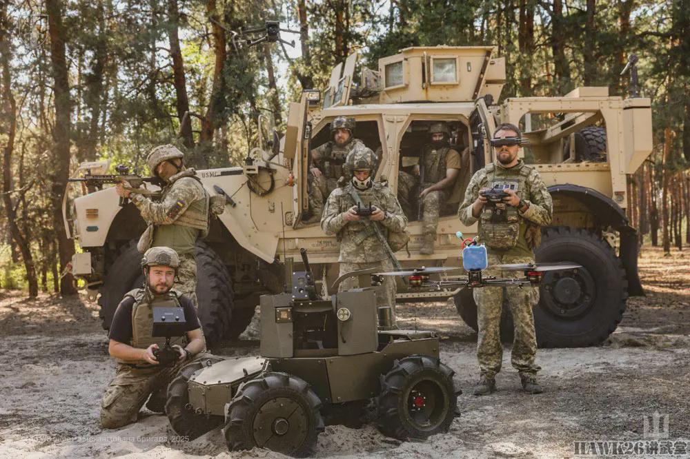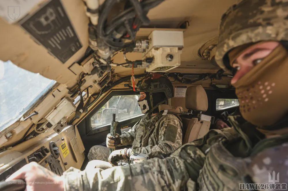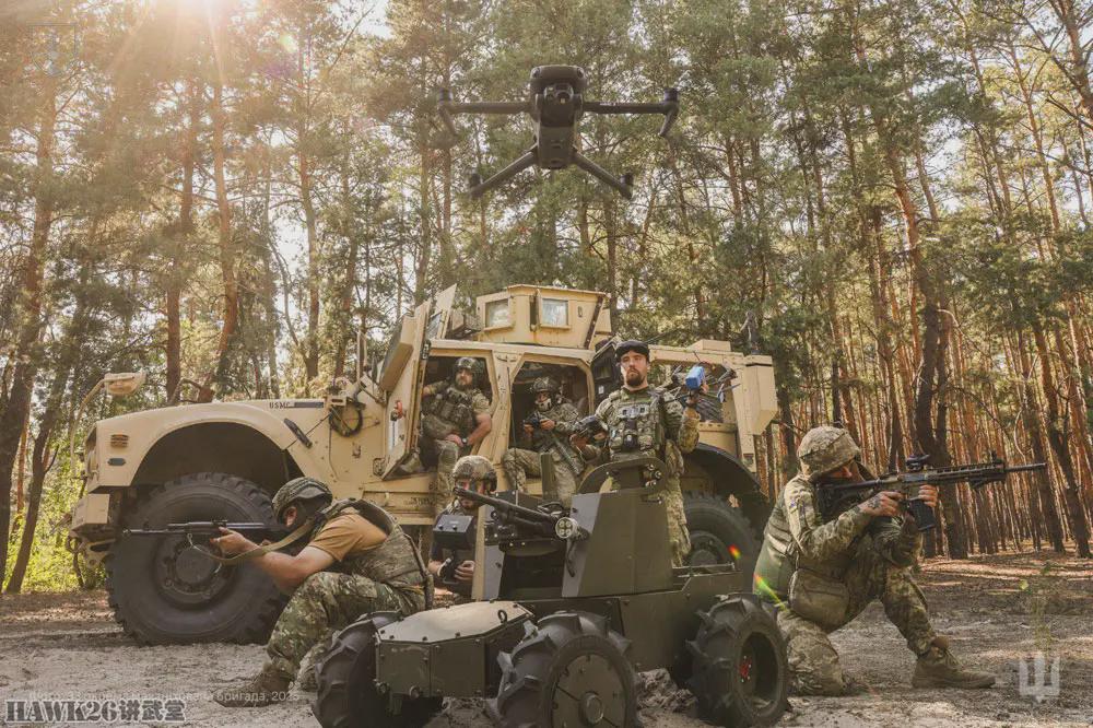 这组照片展示了乌克兰陆军第33独立机械化旅战术训练的场景,着重展示了这支部队配备的无人机和无人车辆。可以看到这支部队使用的是美国提供的M-ATV防地雷反伏击车(MRAP),这是一种装甲车,底盘较高可以有效防止反坦克地雷和简易爆炸装置对车组人员的伤害。