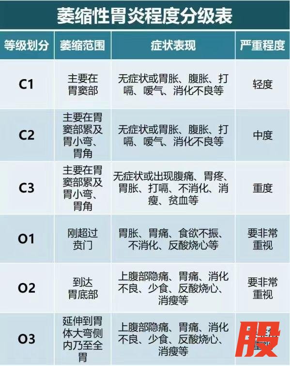 可以这样理解:从C1到C3,再到O1、O2、O3,萎缩的范围越来越大、越来越靠近全胃。